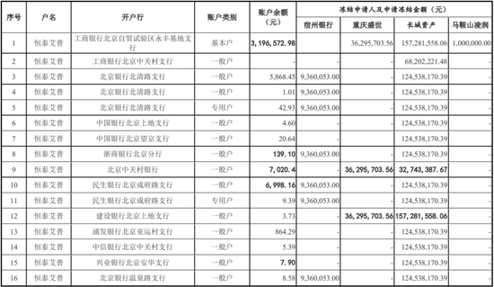 2020年3月31日,恒泰艾普与江苏东汉投资开发有限公司(以下简称“东汉公司”)签订《借条》,借款金额1,500万,期限1个月,利率月息2.3%,2020年4月1日公司收到借款金额1,500万元整。2020年4月1日和2020年6月17日,恒泰艾普分别付东汉公司利息34.5万元、69万元。2022年2月9日,恒泰艾普收到马鞍山市花山区人民法院邮寄的应诉材料,东汉公司已将《借条》项下所有债权转让给了马鞍山凌润信息科技有限公司(以下简称“马鞍山凌润”),请求法院判令被告恒泰艾普向原告偿还借款本金14,862,000元整和利息3,596,014元,并要求以本金14,862,000元为基数,按年利率15.4%的标准向原告支付自2021年11月22日起至付清之日止的利息,请求法院判决马敬忠、刘亚玲对上述借款本息承担连带偿还责任。公司收到法院下发的《民事裁定书》,公司基本户银行账户被冻结。