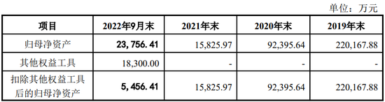 值得注意的是,随着公司持续亏损,新锦动力的扣除其他权益工具后的归母净资产已从2019年末的22.02亿元,大幅度下降至2022年9月末的5,456.41万元。