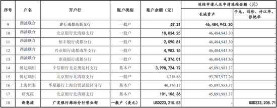 截至2022年9月30日,公司银行账号被司法冻结的金额为人民币321.83万元,美元6.46万元,具体情况如下: