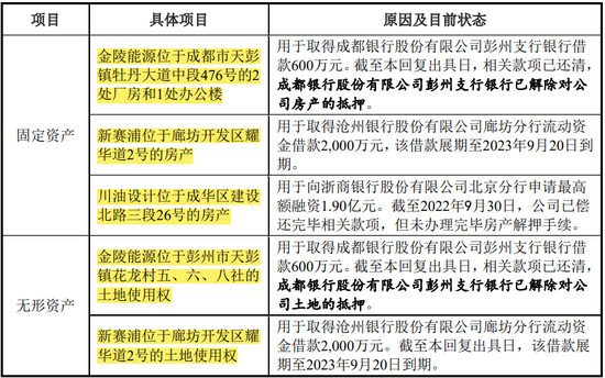 此前披露,截至2022年9月30日,公司各项资产受限情况如下: