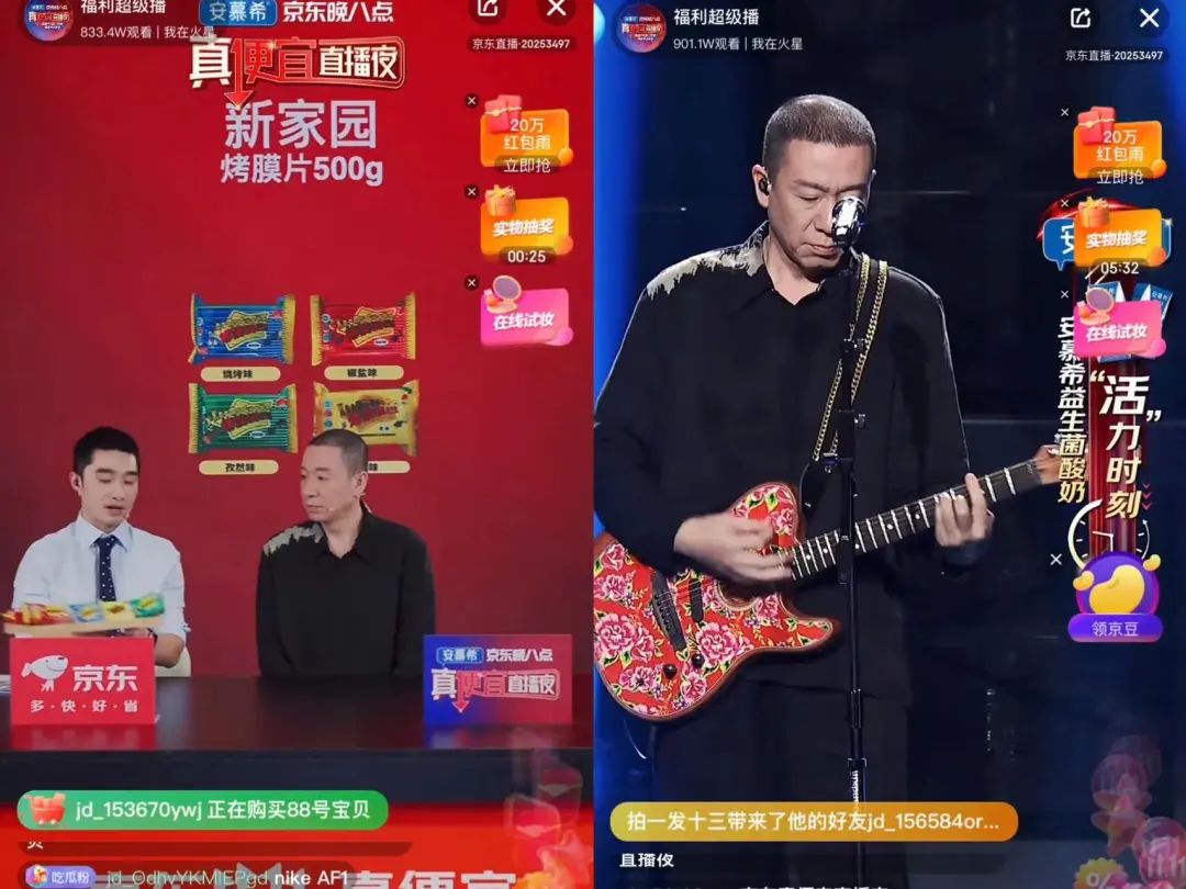 前一晚还参加《乐夏》演唱会的梁龙,后一天转场到了京东直播间,弹唱起了《月牙五更狂想曲》。10月23日晚,多位明星主播走进京东福利超级播直播间带货,带货间隙,梁龙、宝石老舅还演唱了几曲。