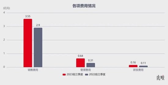 销售费用,一直是敷尔佳费用支出的大头,也是其今年以来增长最多的一项费用。