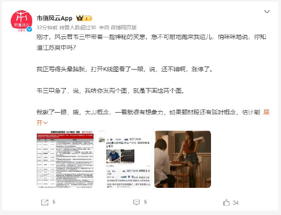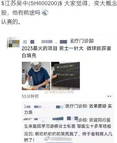 据市值风云APP微博称,今日稍早前,网络传言今日涨停股江苏吴中为重组胶原蛋白概念股之一,其为“男士变大”概念股而涨停。