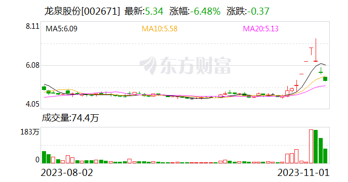 地下管网热股龙泉股份11月1日发布异动公告,公司股票交易价格连续3个交易日(2023年10月30日、2023年10月31日、2023年11月1日)内收盘价格跌幅偏离值累计超过20%。根据深圳证券交易所的相关规定,属于股票交易异常波动。