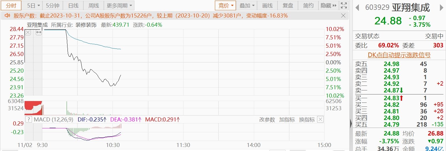 四连板亚翔集成(603929.SH)今日开盘一度涨停,现跌3.75%报24.88元,总市值53.08亿元。亚翔集成昨日晚间发布股票交易异动暨风险提示公告,公司主要从事无尘、无菌净化系统、设备及其周边机电、仪控产品的生产组装、机电安装工程、空气净化工程、建筑装修装饰工程、等业务。截至目前,公司的主营业务未发生变化且各项生产经营活动正常,不存在影响公司股票交易价格异常波动的重大事宜。