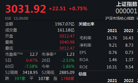 11月3日,A股单边上行,三大指数盘中均涨超1%,截至上午收盘,沪指上涨0.75%,深成指上涨1.26%,市场逾4200股上涨,北向资金半日爆买近70亿元。