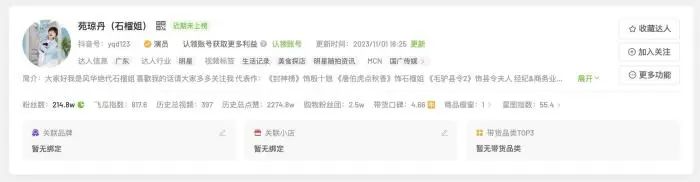 “苑琼丹抖音粉丝两百多万,爆款条数也不多,本身账号没做起来的情况下,贸然入局直播带货,不一定会成功。”