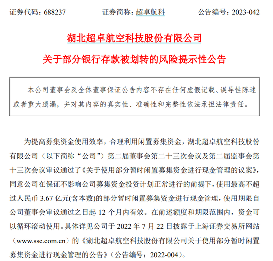 据上市公司超卓航科公告,为了为提高募集资金使用效率,合理利用闲置募集资金,公司使用最高不超过人民币3.67亿元(含本数)的部分暂时闲置募集资金进行现金管理。