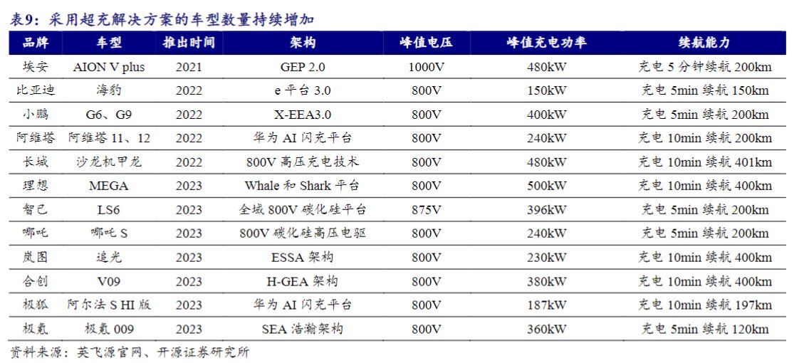 一时之间,超充好像成了一门“必修课”,整个产业链的企业都在布局和投资。分析人士表示,超充产业链的迅速发展,和下游车企的重视脱不开关系。开源证券任浪10月22日研报中表示,除华为之外,已有比亚迪、保时捷、特斯拉、小鹏、理想、埃安、极氪等多家厂商发布超充解决方案,各车企正在努力抢占大功率快充高地。