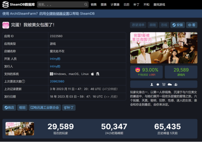 据SteamDB数据,截至目前,该游戏历史峰值一度达65435人,好评率也超90%。这意味着,假设在线人数都进行了付费,按照42元的价格推算,目前这款游戏收入超270万元。