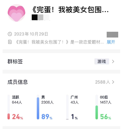 每经记者注意到,男玩家是这款游戏的主要受众。在记者加入的一个游戏玩家群数据显示,2588位玩家中,89%的玩家为男性,00后玩家为58%。
