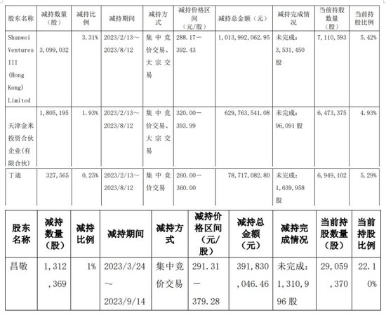 曾经的千元大牛股石头科技虽然前三季度业绩尚可,但却遭多位股东减持。石头科技8月12日公告称,顺为、小米旗下“天津金米”、丁迪2月13日至8月12日期间,分别减持3.31%、1.93%、0.25%公司股份,减持总额分别为10.14亿元、6.3亿元、7871.71万元。随后,石头科技9月16日公告称,公司控股股东、实际控制人昌敬3月24日至9月14日期间累计减持1%股份,减持总金额3.92亿元。以上股东减持总金额合计超21亿元。