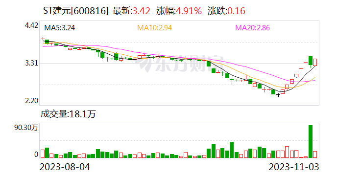 ST建元公告,公司股票将于2023年11月6日开市起停牌1天,于2023年11月7日开市起复牌并撤销其他风险警示。撤销其他风险警示后,公司股票转出风险警示板交易,公司股票交易的日涨跌幅限制由5%变更为10%,公司股票简称由“ST建元”变更为“建元信托”。