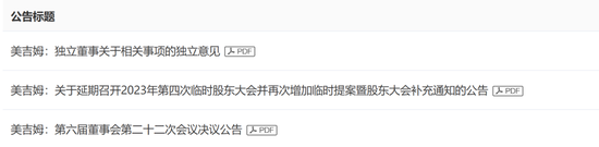 11月5日下午,美吉姆发布了《第六届董事会第二十二次会议决议》《延期召开临时股东大会并再次增加临时提案》等多份公告。