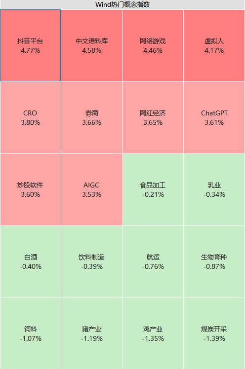 11月6日上午,传媒板块全线大涨,申万一级涨超4%,总市值逼近1.4万亿。抖音平台、中文语料库、虚拟人、网络游戏、AIGC等多个细分赛道大涨。