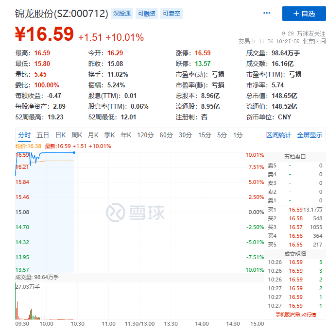 另外,准备出售东莞证券20%股权的锦龙股份,也于上午开盘后强势涨停。