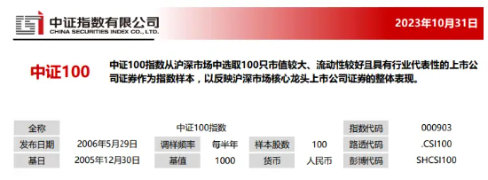 先说中证100指数。根据中证指数公司发布的指数单张,中证100指数从沪深市场中选取100只市值较大、流动性较好且具有行业代表性的上市公司证券作为指数样本,以反映沪深市场核心龙头上市公司证券的整体表现。