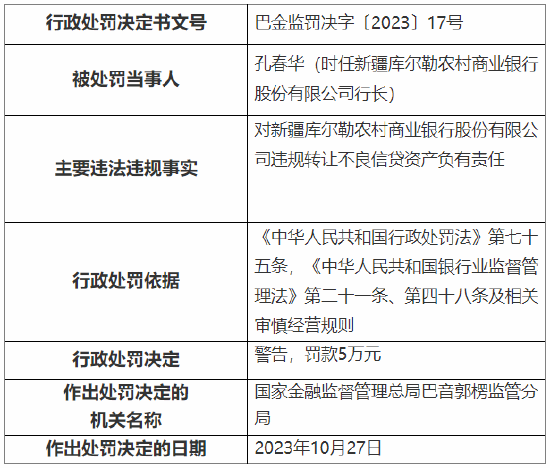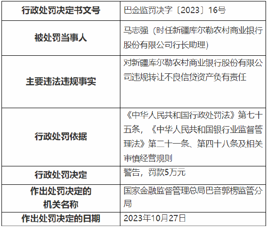 对违规转让不良信贷资产负有责任 新疆库尔勒农村商业银行三名员工被罚 admin 2023-11-07 12 默认 摘要: 11月7日金融一线消息,国家金融监督管理总局巴音郭楞监管分局发布的行政处罚信息公开表显示,新疆库尔勒农村商业银行三名员工对该行违规转让不良信贷资产负有责任,分别被监管警告并罚款... 11月7日金融一线消息,国家金融监督管理总局巴音郭楞监管分局发布的行政处罚信息公开表显示,新疆库尔勒农村商业银行三名员工对该行违规转让不良信贷资产负有责任,分别被监管警告并罚款5万元。 阅读 上一篇太原十大好商务ktv夜总会在哪里·太原高档夜总会排名推荐 下一篇西安更高场所招聘,安全可靠门槛低欢迎加入我们。 太原十大好商务ktv夜总会在哪里·太原高档夜总会排名推荐上一篇 西安更高场所招聘,安全可靠门槛低欢迎加入我们。下一篇 相关推荐 重庆KTV预定_重庆不得不去的几家ktv在这里 2025-10-07 珠海夜场ktv近期招聘信息-带你每天拿高 2025-10-07 苏州白金汉爵酒吧,苏州榜上最热闹的五星酒店式酒吧 2025-10-07 杭州2023更新KTV招聘员工 无任务 2025-10-07 生意好南京高端KTV排名大全丨预订那个好玩 2025-10-07 苏州十大豪华酒吧排名榜单中这前三大小酒吧生意火爆 2025-10-07