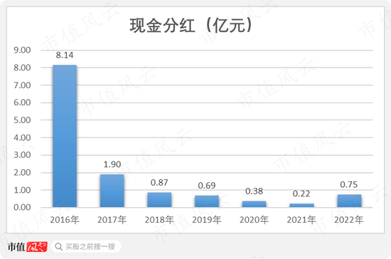 根据近几年情况来看,2016年分红较多,金额为8.14亿,2017年降为1.90亿元。之后在资金比较充裕的2018-2022年,其每年分红都比较少,金额都不到1亿。
