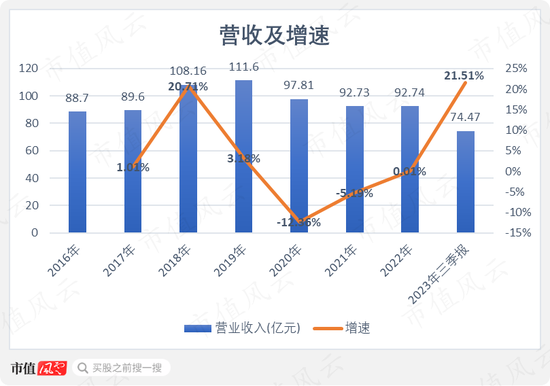 2023年前三季度营业收入较上年同期增加21.51%,达74.47亿;
