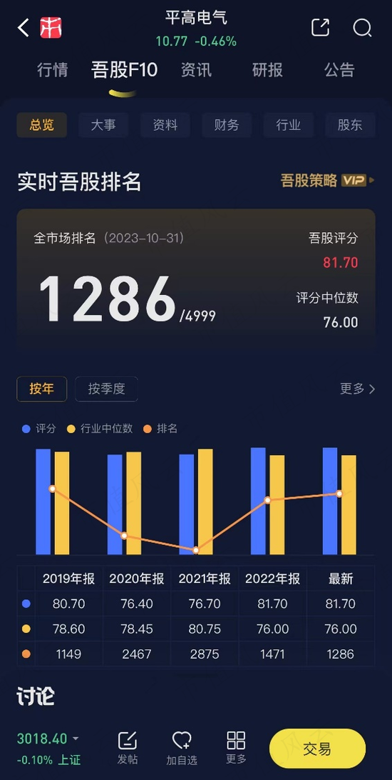 打开吾股F10看排名,2022年提升,最新排名1286,属于比较靠前的。