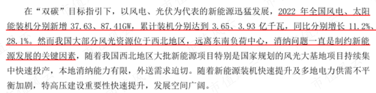另一方面,我国大型风光基地项目的加速建设,2022年风电、太阳能累计装机明显增加,但是大部分风光资源位于西北地区,远离东南负荷中心,因此跨地域电力输送需求增大。