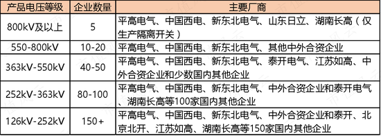 根据公开信息,目前生产800kV及以上电压等级产品的企业,仅为平高电气、中国西电(601179.SH)、新东北电气等5家。