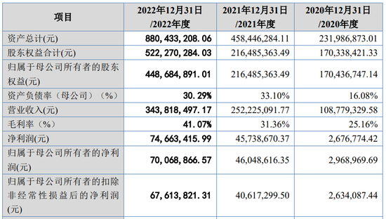 报告期内,公司营业收入分别为10877.93万元、25222.51万元、34381.85万元,扣非归母净利润分别为263.41万元、4061.73万元、6761.38万元。