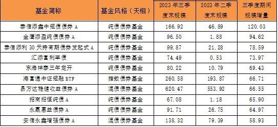 三季度规模环比增量靠前的债券型基金,数据:天相投顾