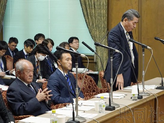 9日,神田宪次(右一)在参议院财政金融委员会上进行答辩。