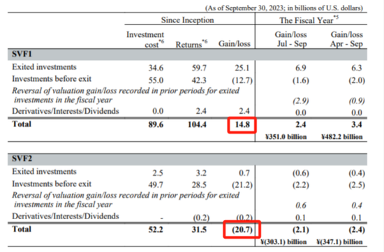 软银愿景基金旗下主要包括软银愿景基金一期(SVF1)、软银愿景基金二期(SVF2)、LatAm Funds三只基金。自成立以来,SVF1的总业绩为盈利148亿美元,SVF2的亏损为207亿美元。