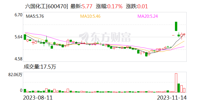 业绩方面,近年来,随着化工产业升级步伐加快,六国化工产品盈利能力增长收到制约,前三季度营收净利双降,其中营收为52.63亿元,同比下滑13.99% ,净利润为亏损1141.66万元,同比下滑105.8%。