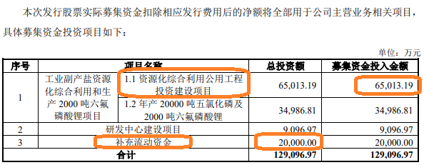 更令人感到不解的是,红东方有10亿元募资是用来建设“工业副产盐资源化综合利用和生产 2000 吨六氟磷酸锂项目”,该项目中的资源化综合利用公用工程投资建设项目是公司现有主营业务草甘膦产品产业链的延伸或补充,将带来产能过剩风险。