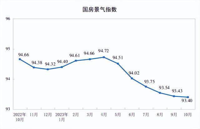 10月份,房地产开发景气指数(简称“国房景气指数”)为93.40。