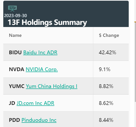 截至11月15日,国内投资者们最为熟悉的几位中国私募基金经理在美股市场上的持仓动向终于明晰。