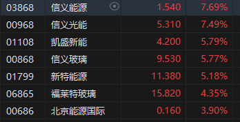 光伏股全线上扬,信义光能涨超9%。消息面上,11月15日,中美两国发表关于加强合作应对气候危机的阳光之乡声明,支持努力争取到2030年全球可再生能源装机增至三倍,并计划从现在到2030年在2020年水平上充分加快两国可再生能源部署,以加快煤油气发电替代。