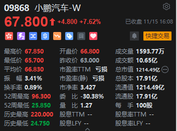 汽车股全天强势,小鹏汽车涨超7%领衔。消息面上,小鹏汽车G9在10月份以4,593台出色的销售表现荣登中大型纯电SUV销量榜首,并且连续四周保持销量第一的位置,智驾高配的MAX版本占比更是高达80%以及其全新MPV车型X9将于11月17日的广州车展上开启预售。