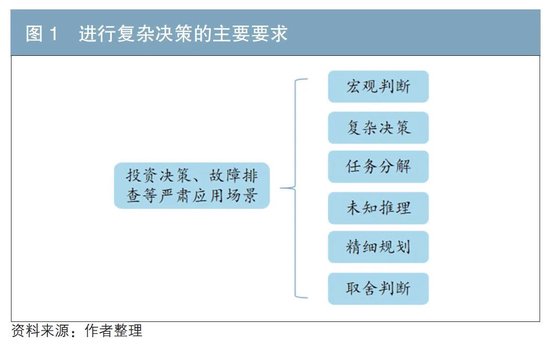 目前ChatGPT较好地实现了机器与人类的开放式对话。然而,大模型的实际应用场景依赖机器的复杂决策能力,复杂决策是领域应用的根本特点。复杂决策意味着需要考虑诸多因素,包括但不限于数据的质量、规模、类别、分布等。此外,决策的准确度还依赖对综合任务的拆解能力、精细严密的规划能力、对宏观态势的研判能力等。这些能力之间相互交织、相互影响,决策的难度也随之增加。