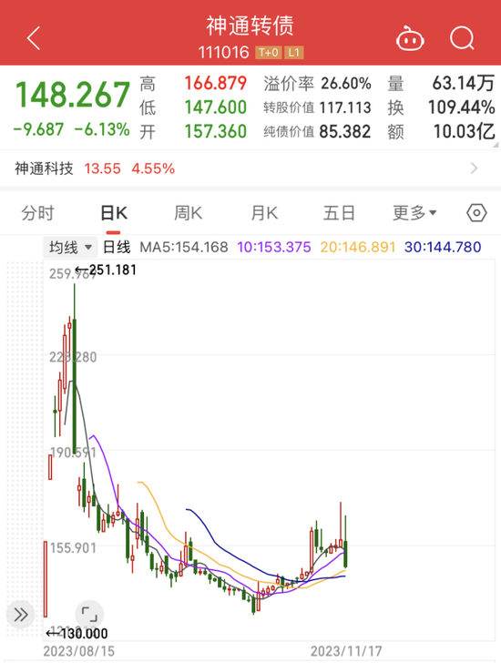 8月份新转债上市爆炒过程中,神通转债在连续暴涨过后,更是出现高位闪崩现象,如今价格仅为148.267元,较高位的251.181元跌去了40%。