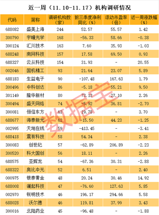 近一周机构调研个股数量有570多只,盛美上海成为调研机构数量最多的股票。