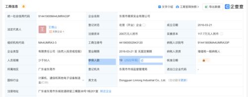 然而,天眼查显示,朝冠科技注册资本和实缴资本为100万元人民币,参保人数仅有14人,公司规模相对较小。