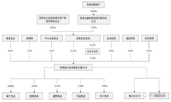 南方乳业是一家国资企业,贵阳农投集团直接持有公司7650.95万股股份,占公司股本总额的51.01%,为公司的控股股东,合计控制公司 88.21%的股权。贵阳农投集团是贵阳市国资委履行出资人职责的国有企业,贵阳市国资委直接持有贵阳农投集团90%的股权,贵阳市国资委为公司的实际控制人。