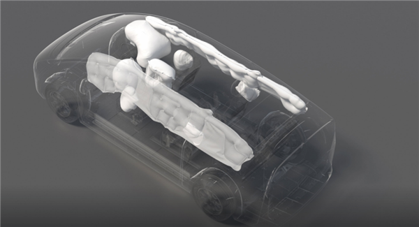 并且根据理想官方的信息,MEGA 在 2023 版中保研碰撞测试中,正面双侧 25% 小偏置碰撞的成绩均为G(优秀)。其次理想还给 MEGA 标配了 9 个安全气囊,侧面有个长 3.2 米的侧气帘,能覆盖全部三排。