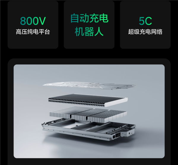 理想选择了一个成本最低的方式:超级快充。800V 高压平台,再加个12 min 充 500km 的 5C 电池。