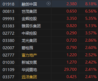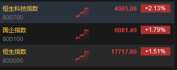 内房股全线上涨,融创中国涨超8%。消息面上,11月17日,人民银行、金融监管总局、证监会联合召开金融机构座谈会, 会议指出,一视同仁满足不同所有制房地产企业合理融资需求,对正常经营的房地产企业不惜贷、抽贷、断贷。要落实好跨周期和逆周期调节的要求,着力加强信贷均衡投放,统筹考虑今年后两个月和明年开年的信贷投放,以信贷增长的稳定性促进我国经济稳定增长。