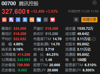 科网股齐涨,腾讯控股涨近4%。开源证券指出,腾讯储备游戏丰富,《元梦之星》《全境封锁2》《王者万象棋》《王者荣耀:星之破晓》等后续上线后有望继续驱动游戏业务增长。同时,微信小游戏快速增长,月活用户超4亿,小游戏内购有望持续为公司贡献可观收入增量。此外,视频号使用时长保持快速增长,2023Q3视频号总播放量同比增长超50%,且得益于播放量和用户时长增长,视频号广告收入环比增长显著,或继续驱动广告业务增长。