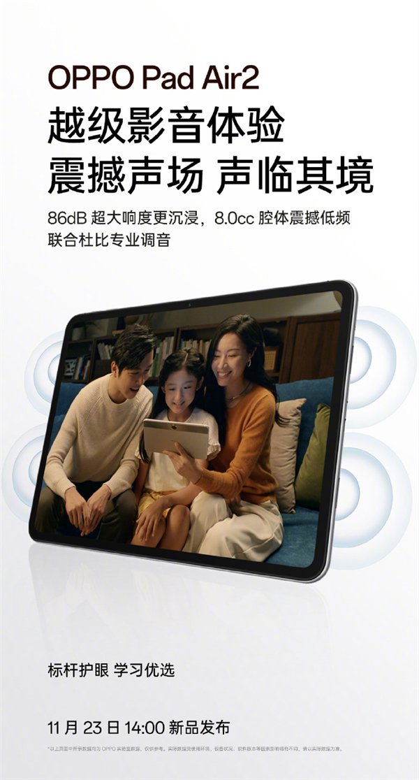 快科技11月21日消息,全新的OPPO Pad Air2平板电脑将会在11月23日14:00正式发布。