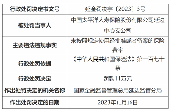 因未按照规定使用经批准或者备案的保险费率 太平洋人寿保险一中心支公司被罚11万 admin 2023-11-22 16 默认 摘要: 11月22日金融一线消息,国家金融监督管理总局延边监管分局发布行政处罚决定书显示,因未按照规定使用经批准或者备案的保险费率,中国太平洋人寿保险股份有限公司延边中心支公司被罚11... 11月22日金融一线消息,国家金融监督管理总局延边监管分局发布行政处罚决定书显示,因未按照规定使用经批准或者备案的保险费率,中国太平洋人寿保险股份有限公司延边中心支公司被罚11万元;同时,作为相关负责人,该公司副总经理被警告,并处以罚款1万元。 阅读 上一篇宁波KTV招聘员工〖当天结起〗夜总会人的家 下一篇宁波酒吧招聘员工〖温德姆静吧〗包厢不冷 宁波KTV招聘员工〖当天结起〗夜总会人的家上一篇 宁波酒吧招聘员工〖温德姆静吧〗包厢不冷下一篇 相关推荐 拉萨KTV招聘-好上班的夜总会凡事有商有量 2025-11-08 南宁KTV招聘-排版的夜总会超乎自己想象 2025-11-08 长沙著名十大夜总会-高端KTV排名大全预定-商务宴请朋友聚会。体验新的感觉。 2025-11-08 上海睿俪国际KTVKTV排名大全口碑不错的娱乐会所预定订房 2025-11-08 上海KTV招聘员工-服务员少的夜总会喂大你的格局 2025-11-08 济南KTV招聘-缺人的夜总会应该慢慢变好 2025-11-08
