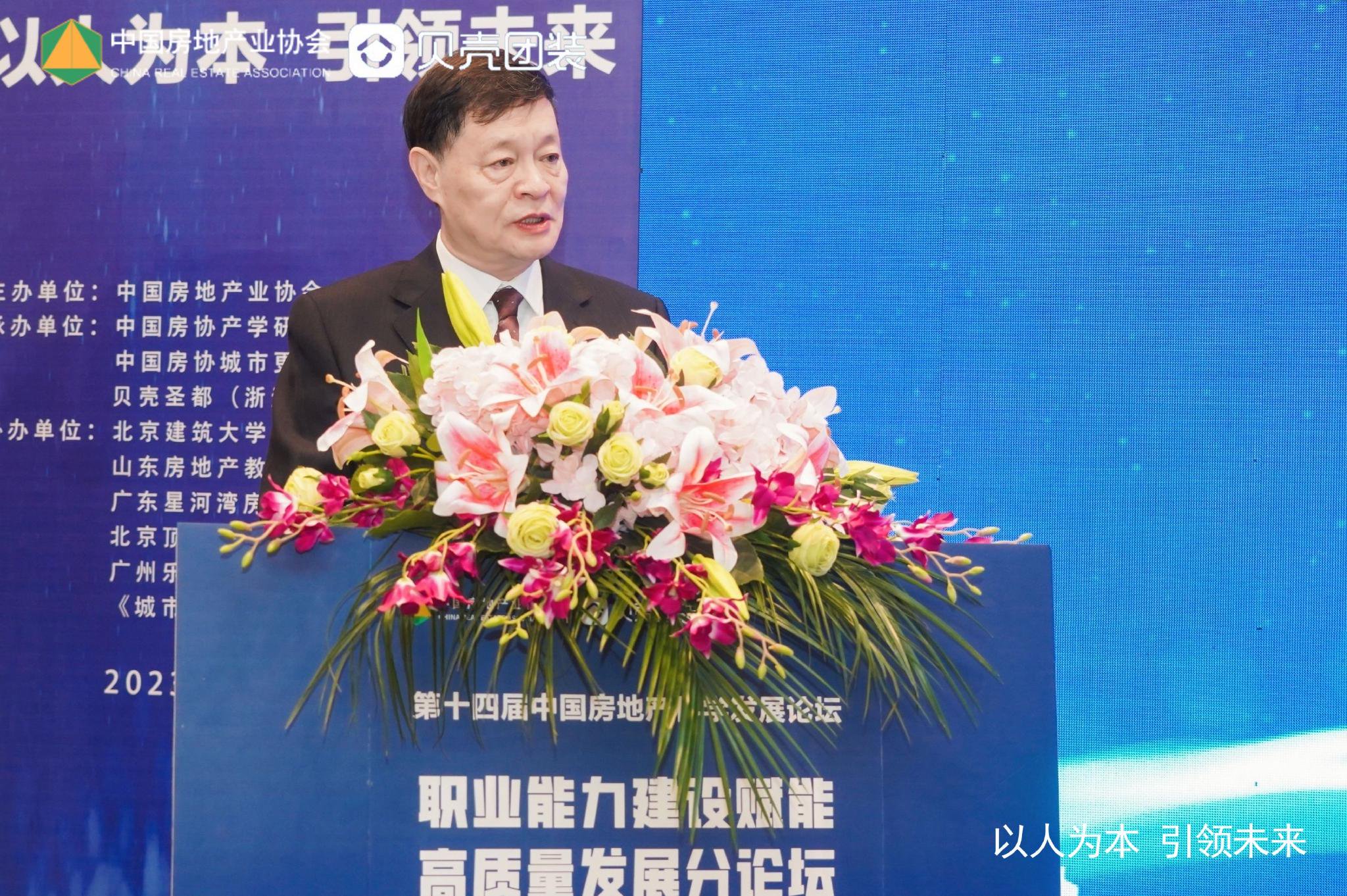 住房和城乡建设部原总工程师、中国房地产业协会副会长兼秘书长陈宜明出席活动并致辞,提示职业能力建设过程当中需要注意的问题。