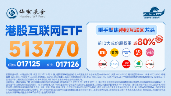 据了解,港股互联网ETF(513770)跟踪中证港股通互联网指数(931637),权重股汇聚腾讯控股、美团、小米集团、快手等不同互联网细分赛道龙头公司,其中持仓腾讯控股、美团、小米集团、快手、京东健康权重超60%,前十大成份股权重近80%,重手聚焦互联网巨头企业,随着平台经济基调明确,利好因素持续释放,港股互联网龙头有望迎来估值、盈利双升。